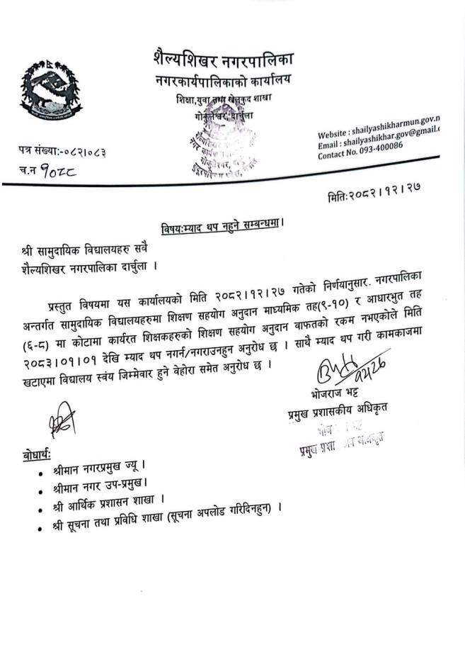 शैल्यशिखर नगरपालिकाको वार्षिक नीति कार्यक्रम २०८२।०८३