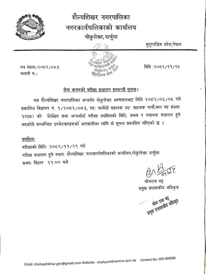 सेवा करारको परीक्षा सञ्चालन सम्बन्धी सूचना