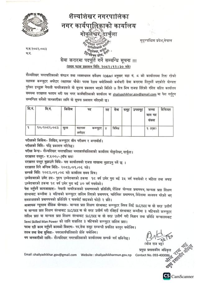 सेवा करारमा पदपूर्ति सम्बन्धी सूचना
