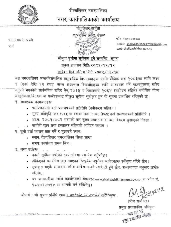 शैल्यशिखर नगरपालिकाको वार्षिक खरिद योजना
