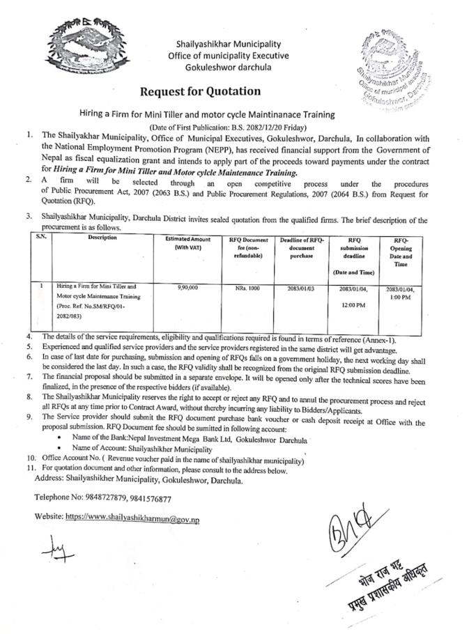 शैल्यशिखर नगरपालिकाको वार्षिक खरिद योजना