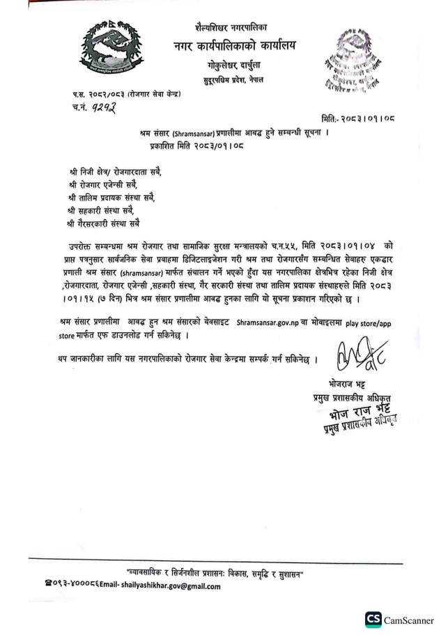 श्रम संसार प्रणालीमा आबद्ध हुने सम्बन्धी सूचना