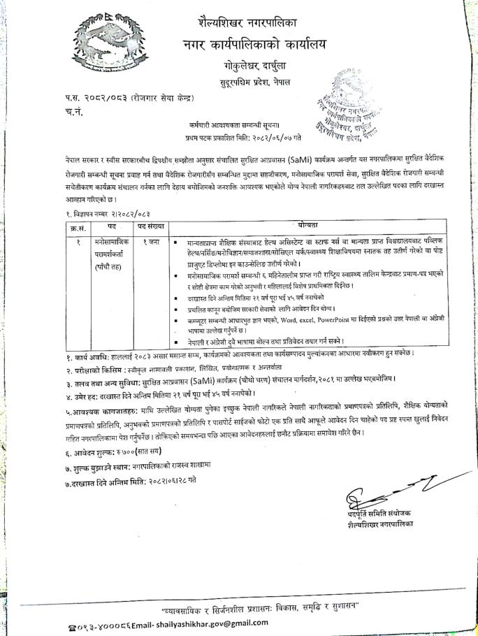 शैल्यशिखर नगरपालिकाको वार्षिक नीति कार्यक्रम २०८२।०८३