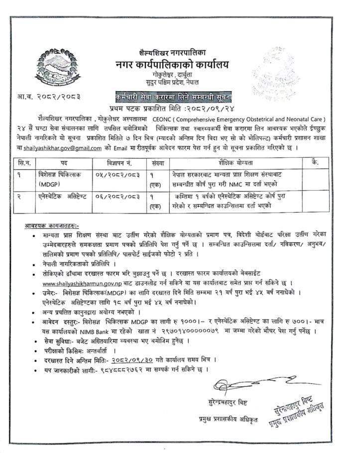कर्मचारी सेवा करारमा लिने सम्बन्धी सूचना