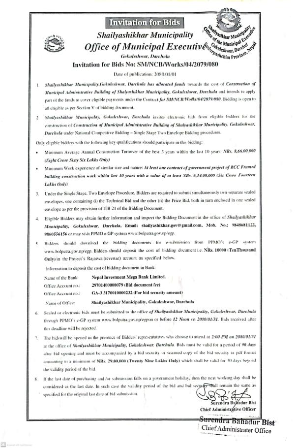 शैल्यशिखर नगरपालिकाको वार्षिक खरिद योजना