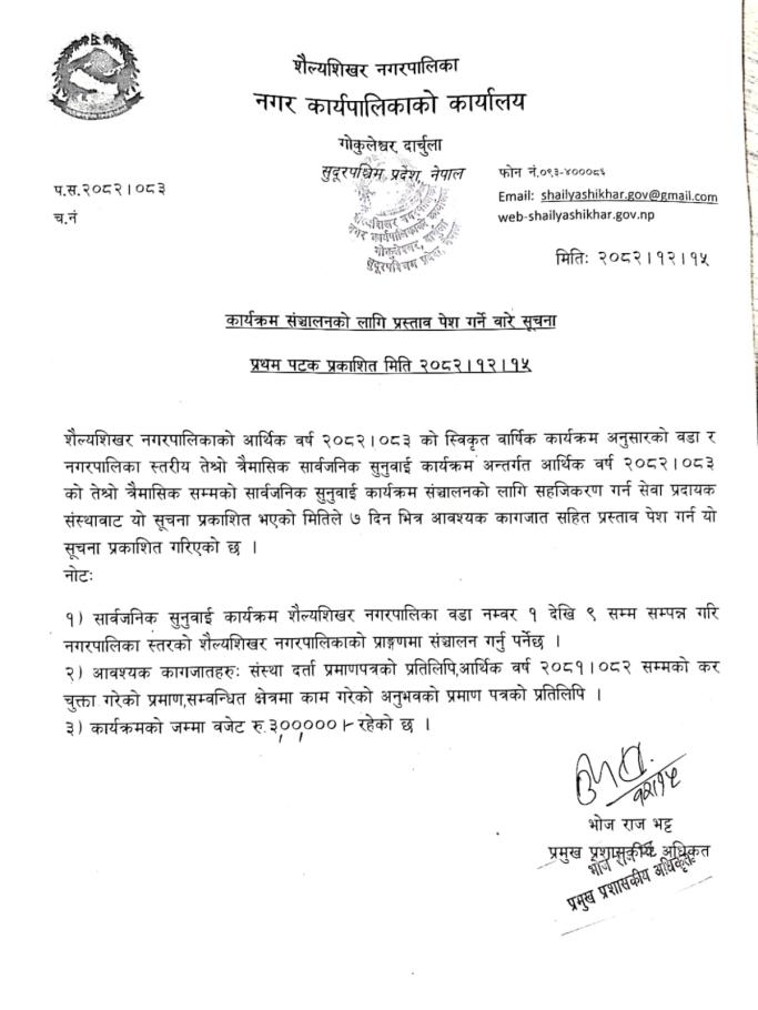 सार्वजनिक सुनुवाईको लागि कार्यक्रम पेश गर्ने सम्बन्धी सूचना